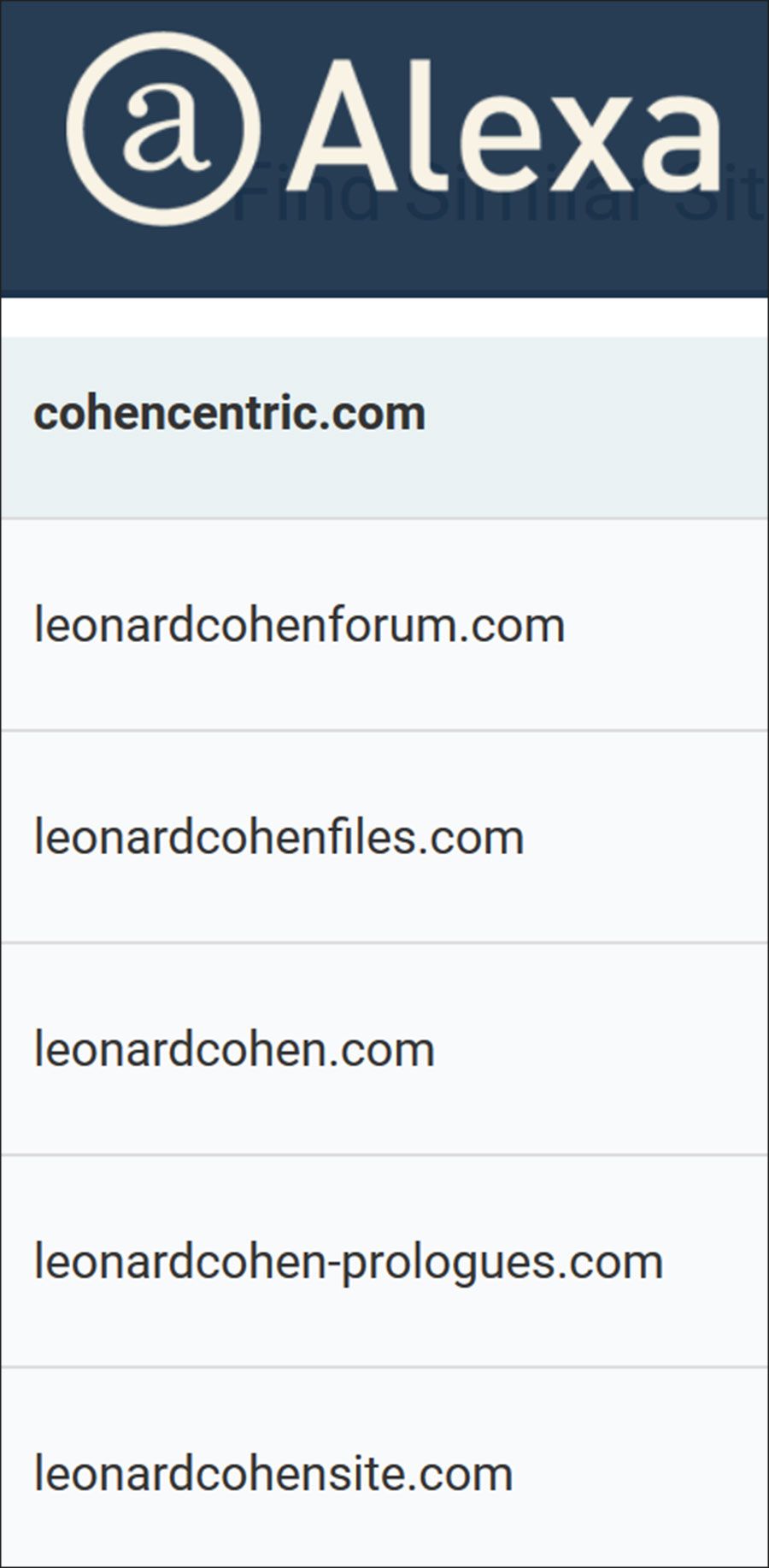 And, Cohencentric is well-liked. Since opening March 7, 2015, Cohencentric has accumulated over 4.8 million hits. It is, in fact, the single most popular Leonard Cohen website, according to Alexa.